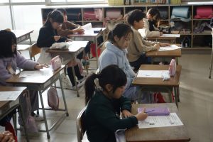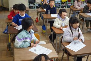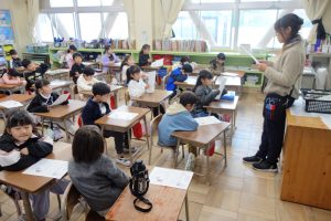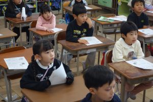 この日の朝は、今月の防災学習に取り組みました。今月の内容は、災害に対する日頃からの備えについてでした。とりわけ、家庭内の家具などの固定や非常用持ち出し袋の確認などについての話を聞きました。どうしてベッドまわりに靴などをおいておくとよいのかという話には、多くの子が納得していましたね。