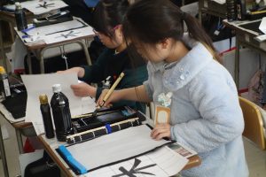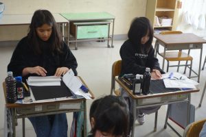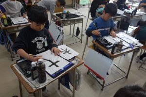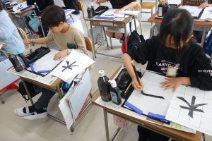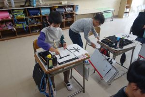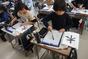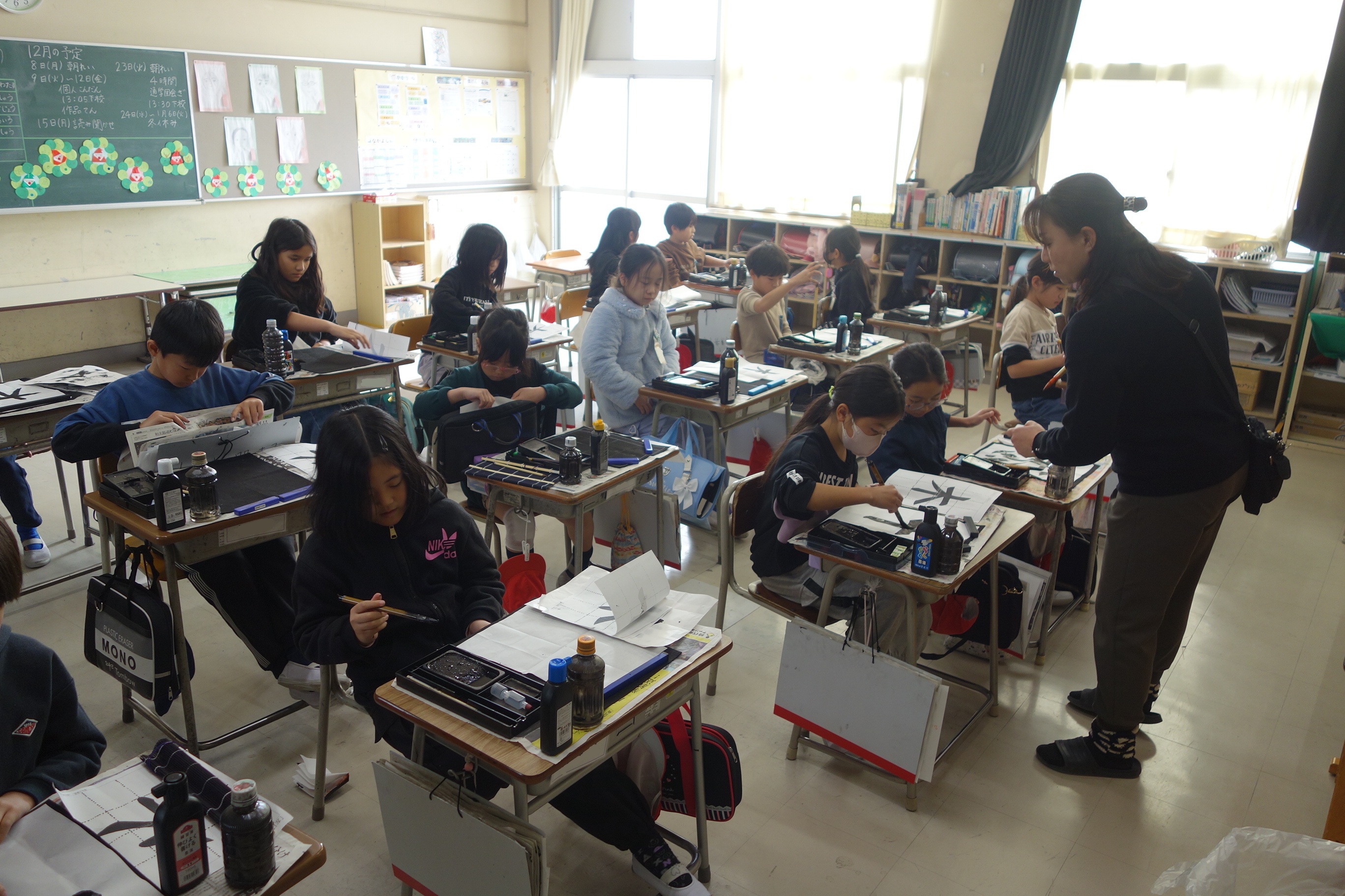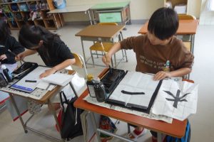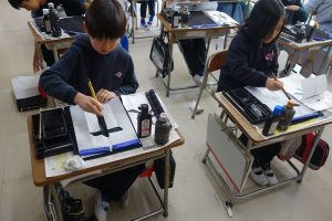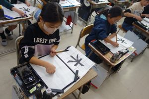 『木』 3年生 2025.12.19 3年生の書写は毛筆でした。『木』という字を書きました。「右ばらい」と「左ばらい」があるので、慎重に書く必要があります。皆さん、清書の前には少し緊張した表情でした。書き始めたら、一画一画、丁寧に書いていましたね。