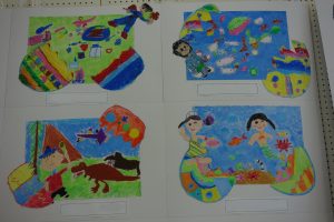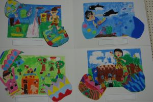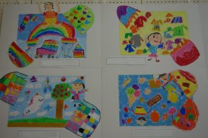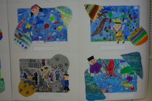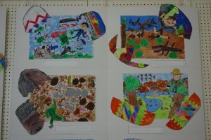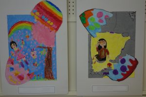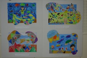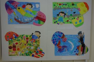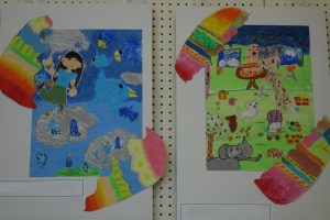 冬休みになりました。安全に気を付けて健康に過ごしてくださいね。さて、先日行われた作品展を学年ごとにふりかえり一部の平面作品をご紹介します。展示された状態で撮影したため、展示方法とカメラアングルの関係で作品の大きさに差異があったり同じ作品が何度も映り込んでいること等があったりしますがご容赦ください。この日は2年生の平面作品の一部を紹介させていただきます。