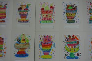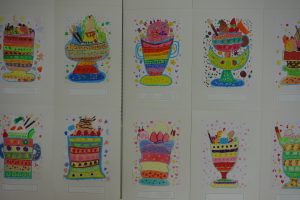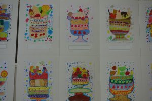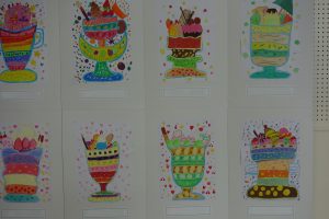 3年生先日行われた作品展を学年ごとにふりかえり、一部の平面作品をご紹介します。展示された状態で撮影したため、展示方法とカメラアングルの関係で作品の大きさに差異があったり同じ作品が何度も映り込んでいること等があったりしますがご容赦ください。この日は3年生の平面作品の一部を紹介させていただきます。