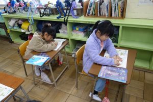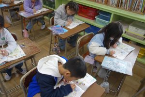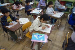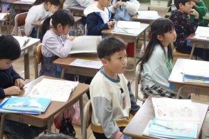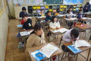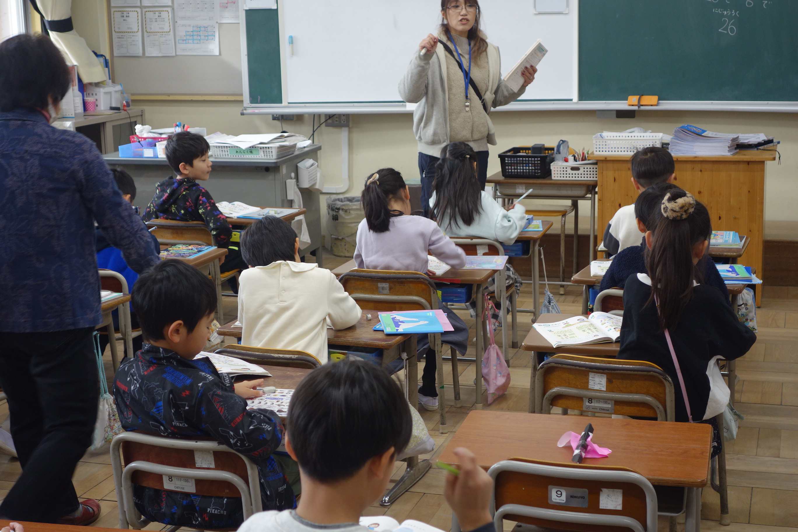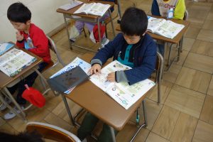 大きいかず 1年生 2026.01.07 1年生の算数は、大きな数について学んでいます。10ずつのまとまりで数えたり、1がいくつあるかを数えて全部でいくつになるかを考えたりしています。この日は教科書の問題のキャンディーの数を、10ずつのまとまりを鉛筆でかきながら数えました。