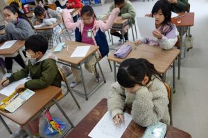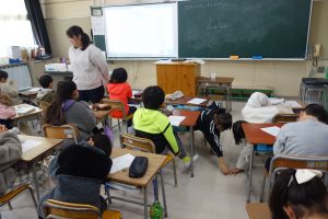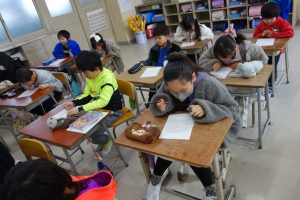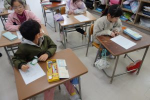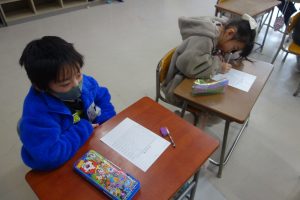 九九のひょうをしらべよう 2年生 2026.01.07 2年生の算数は、かけ算のきまりについて学んでいます。この日は九九の表を調べるために、プリントの九九の表を完成させました。ペアになって完成した表をチェックし合った後で、九九の表から九九のきまりについて調べました。