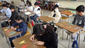 3年生 絵馬&算数 3年生 2026.01.07 今年の目標や願いを絵馬に書きました。気持ち新たに、今年もよい一年になるといですね。 算数は三角形と四角形の学習に入りました。 色の棒を使って様々な三角形を作り、仲間分けしました。