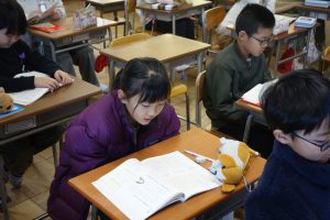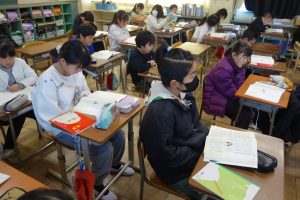 もしものときにそなえよう 4年生 2026.01.09 4年生の国語は、調べて考えたことを文章に書くときに、自分の考えの理由や事例との関係を明確にして書き表し方を工夫することを学んでいます。この日は、座席順に教科書を一文ずつ読んで、理由や例をあげるときに使うと良い言葉を確認しました。