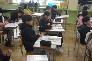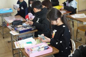 5年生の家庭科では、身の回りを整えることのよさや必要性について考えました。身の回りが散らかっていると、時間的にも経済的にもむだが発生します。そこでこの日は、自分のお道具箱の整理整頓に取り組みました。不要なものを捨て、使用頻度の高いものが取り出しやすい手前になるように整理しました。自宅の掃除にいかせる学習でしたね。