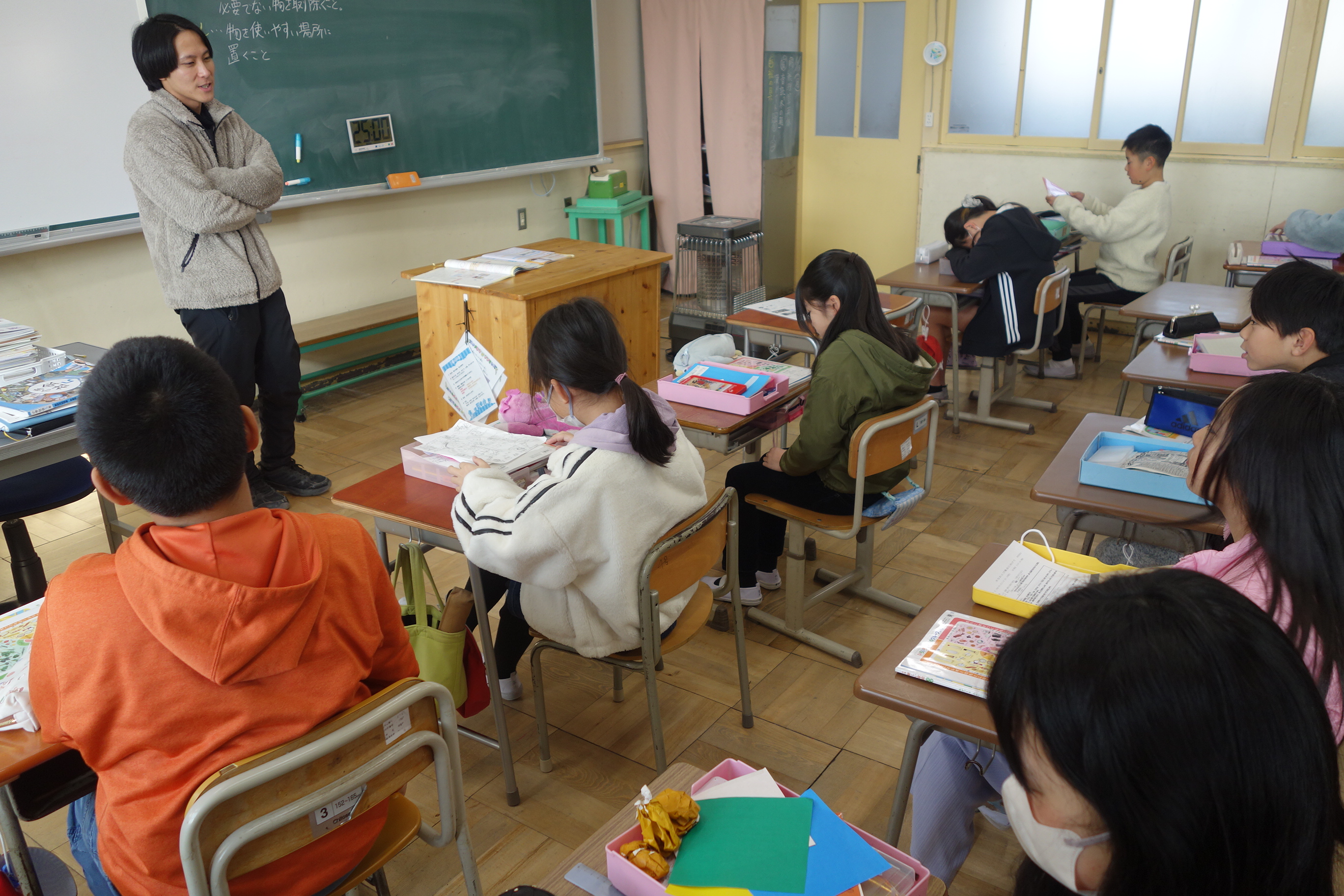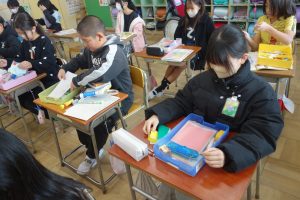 5年生5年生の家庭科では、身の回りを整えることのよさや必要性について考えました。身の回りが散らかっていると、時間的にも経済的にもむだが発生します。そこでこの日は、自分のお道具箱の整理整頓に取り組みました。不要なものを捨て、使用頻度の高いものが取り出しやすい手前になるように整理しました。自宅の掃除にいかせる学習でしたね。