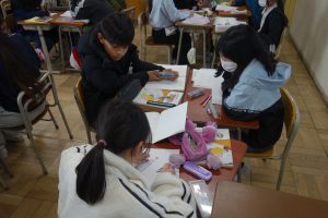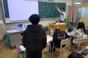 5年生5年生の算数は、図形の学習をしています。この日は、円を使って正六角形をかく方法をみんなで考え、出し合いました。円の中心から間の角が60度になる補助線を引く方法や三角定規の60度の角を使う方法、コンパスを使う方法など、いろいろな考え方がありましたね。