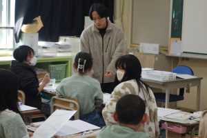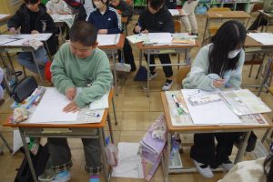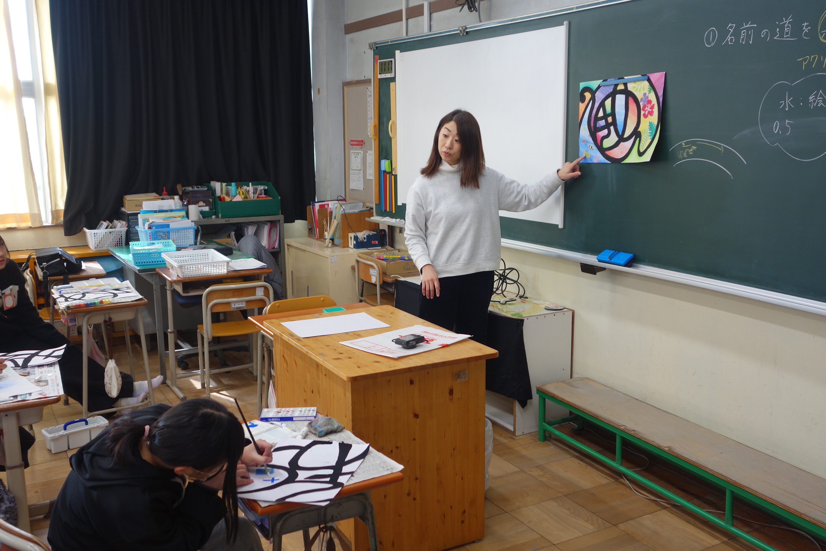 5年生5年生の図画工作は、自分の名前をデザインに組み込んだ絵画の制作に取りかかっています。名前のレタリングを道に見立ててアクリル絵の具の黒で着色します。その後、まわりの絵を淡い水彩の色彩で仕上げていく予定です。色のコントラスト鮮やかな作品になりそうです。