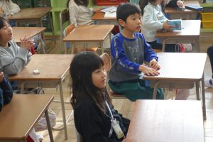 1年生1年生の生活科は、冬の遊びに挑戦しています。前回は、昔ながらのコマ回しに挑戦しました。ひもを巻き付けて上手く回すのにはコツが必要でした。今回はヨーヨーに挑戦しました。ひもで回すところは共通していますが、こちらの方がやりやすそうです。みなさん、ヨーヨーを見たときから目がきらきらしていましたね。
