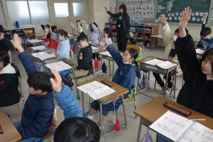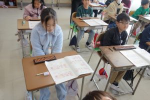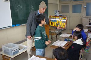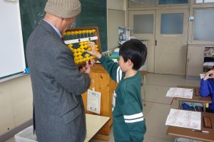 3年生3年生は講師の先生をお招きしてそろばんの学習に取り組んでいます。2日目は初日と別の学級の番です。紙面の問題に加えて、講師の先生にも問題をだしていただきながら、そろばんの使い方を覚えました。みなさん、とても意欲的に計算に取り組んでいました。