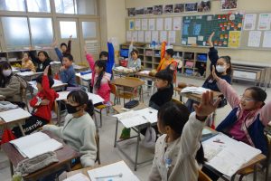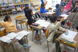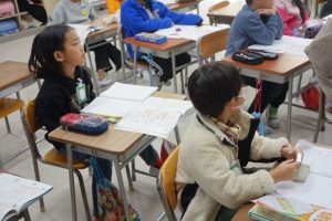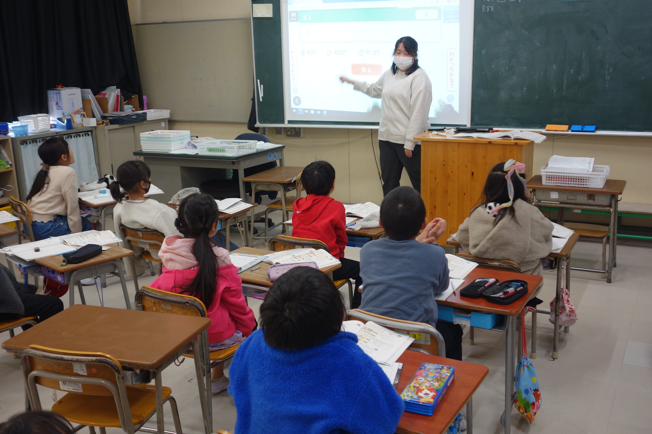 2年生2年生の算数は、1000をこえる数の学習をしています。まず、1000をこえる数の読み方や表し方を覚えました。それから、1000をこえる数の表し方の問題にみんなで挑戦しました。3択問題だったので、みなさん自信をもって答えることができていましたね。