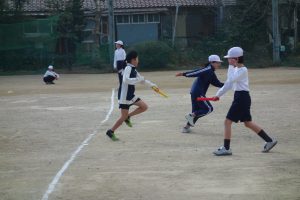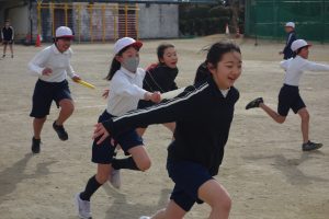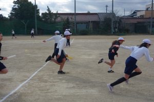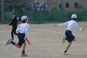 5年生5年生の体育は短距離走の練習をしています。この日は、リレーのバトンパスの練習をしました。スピードに乗ったままでバトンをしっかりと受け渡せるように、グループ内で渡す位置や走り出す位置を相談しながら練習しました。スムーズなバトンパスは難しいのですが、少しでもうまくいくようにと熱心に練習していましたね。