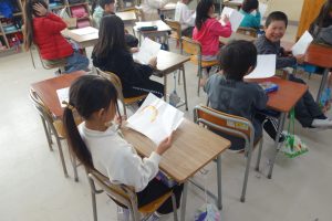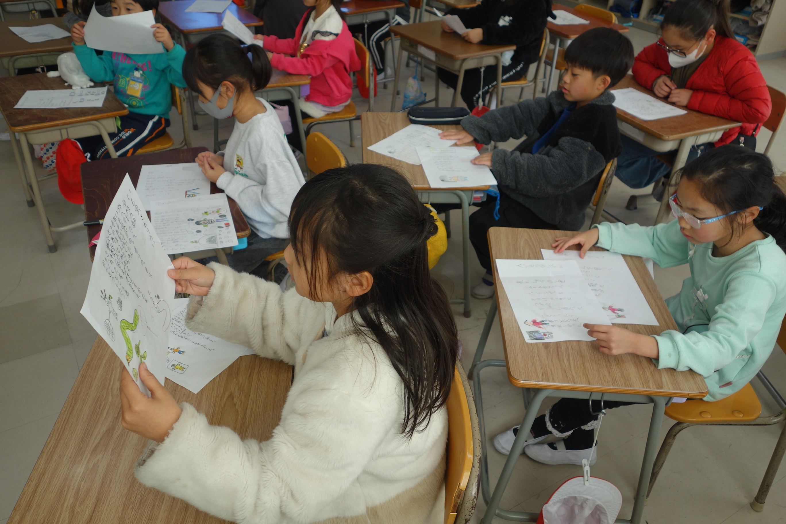 2年生2年生の国語では、詩を作って読み合い、感想を伝え合ったりお互いの詩の内容や表現のよいところを見つけ合ったりする学習をしています。この日は、完成した詩をお互いに読み合いました。内容や使っている言葉に多くの発見があり、楽しく学習ができました。