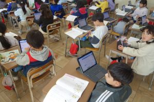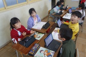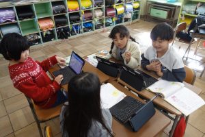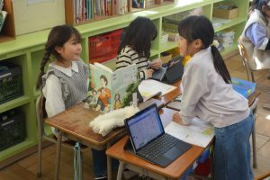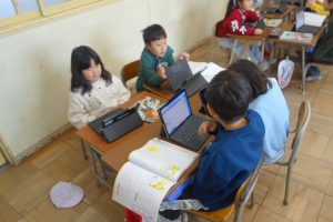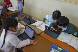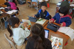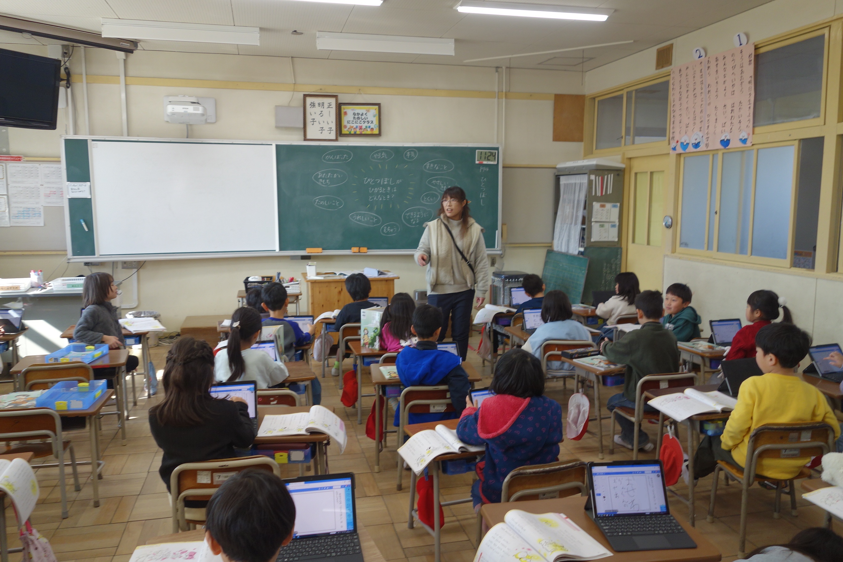 ひとつぼし 1年生 2026.02.04 1年生の道徳は、友達や自分のよいところについて考えました。まずは自分の「ひとつぼし」が光るときを探しました。タブレット端末に入力した後、グループになってお互いの「ひとつぼし」を確認し合い、改めて友達や自分のよさを実感していましたね。