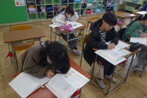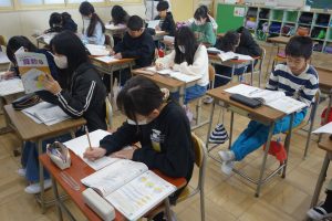 帯グラフと円グラフ 5年生 2026.02.05 5年生の算数は、割合をあらわすグラフについて学んでいます。帯グラフと円グラフそれぞれの仕組みを理解し読み方を覚えました。その知識を使って、教科書の練習問題に取り組みました。