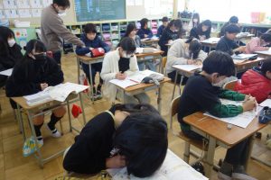 冬を明るく暖かく 6年生 2026.02.10 6年生の家庭科は、冬を快適に過ごす工夫について学んでいます。この日は、暖房器具を使うと結露やカビが発生することから、健康を考えた効果的な換気の必要性について考え、ノートにまとめました。