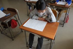 3年生3年生の国語では、物語を書いています。いよいよ物語が完成したので、この日は友達の書いた物語を読みました。ひとつの地図から生まれてくる想像の世界は無限にあるようで、多くの冒険とその結末を目にすることができました。物語を読みながら、にこっと微笑む子がいたので素敵なお話をたくさん読めたのだと思います。