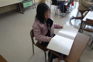 3年生の国語では、物語を書いています。いよいよ物語が完成したので、この日は友達の書いた物語を読みました。ひとつの地図から生まれてくる想像の世界は無限にあるようで、多くの冒険とその結末を目にすることができました。物語を読みながら、にこっと微笑む子がいたので素敵なお話をたくさん読めたのだと思います。
