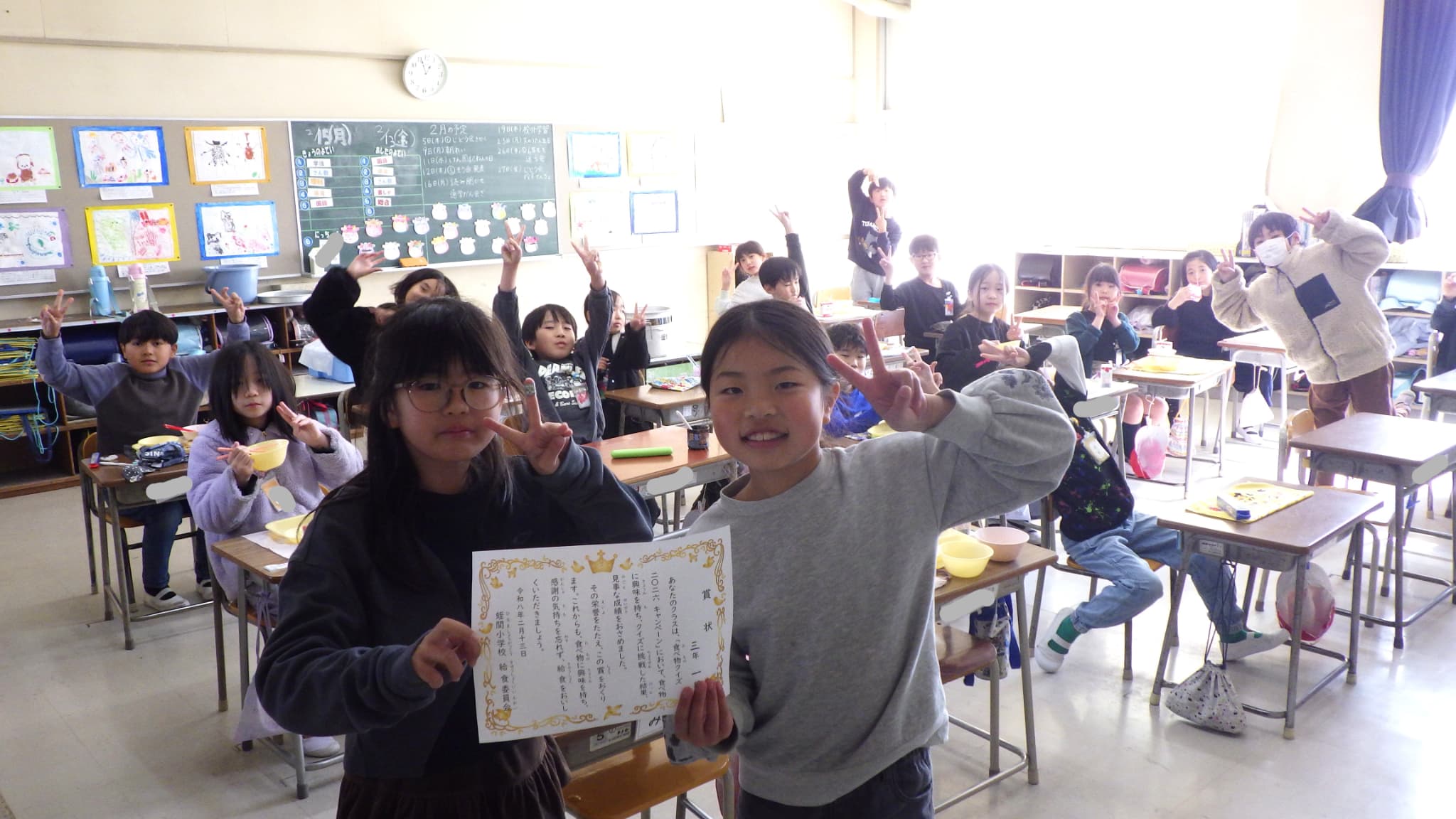 先週、給食委員会によるクイズがありました。正答率のよかったクラスには、賞状がもらえました。