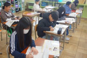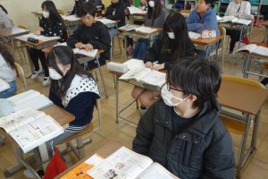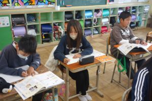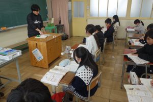 5年生の社会科では、産業と情報との関わりについて学んでいます。この日は、アイスクリームをつくる会社が、生産量を決めたり、輸送の計画を立てたりするとき予測情報を生かそうとしていることを知りました。SNSなども利用されているという話は驚きでしたね。