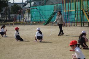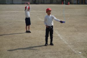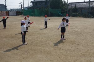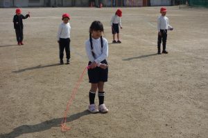 1年生1年生の体育は、なわとびを練習しました。温かい日だったので、気持ちよく練習できたと思います。この日は、なわとびを交差させる練習をしました。これが上手になると、あや跳びや交差跳びができるようになるので、皆さん頑張って練習していましたね。
