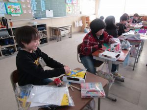 3年生の図工では、磁石の性質を利用した工作をしています。ボールを動かして、野球やサッカーを表現したり、乗り物を動かして道路をわたる様子を表したりと、発想豊かに作品をつくりました♪
