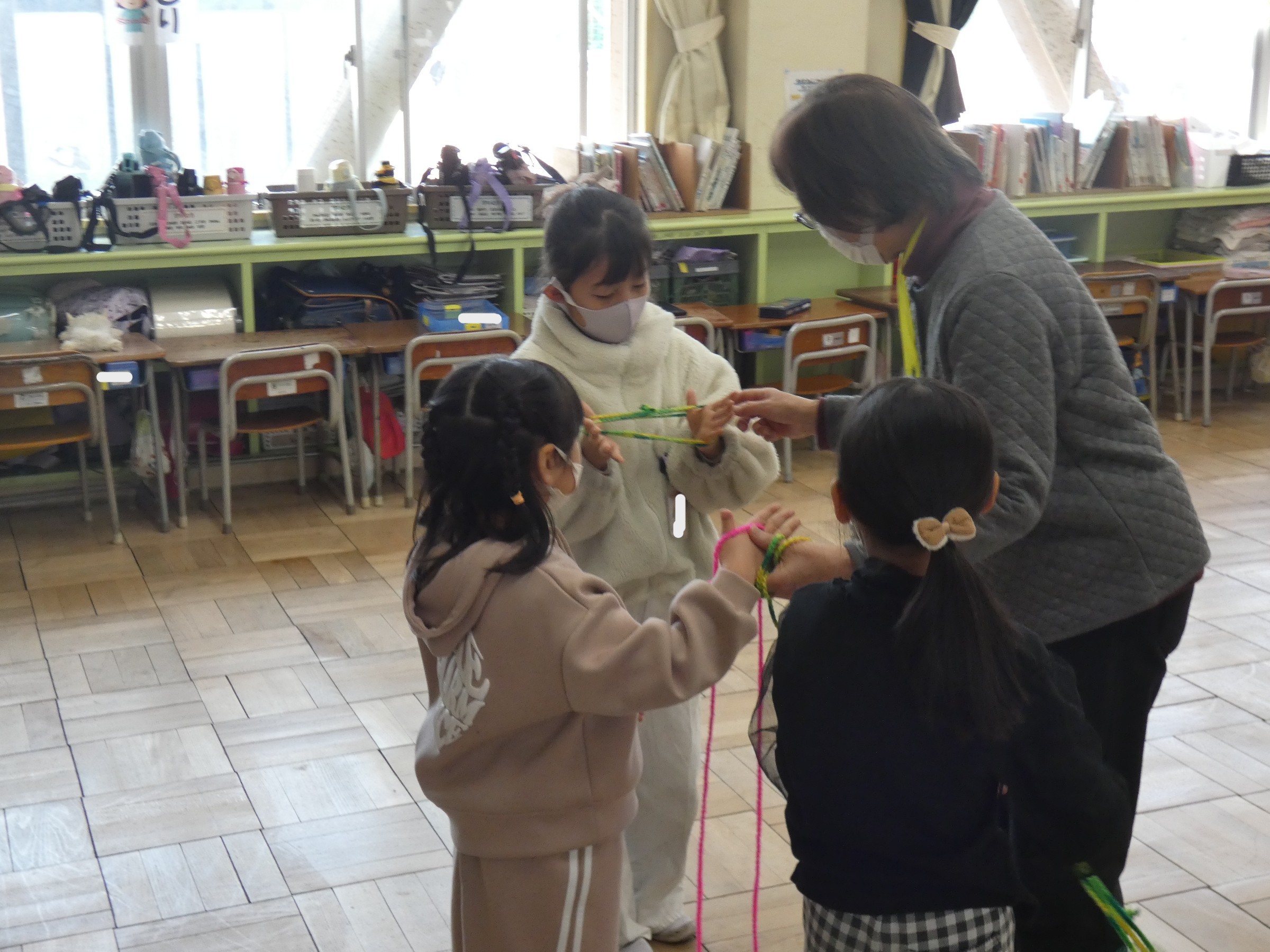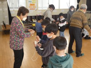 むかし遊び 1年生 2026.02.18 1年生がこま回しやお手玉などむかし遊びを体験しました。 保護者の方を中心にボランティアの方にも来ていただきました。 教えていただきまして、ありがとうございました。