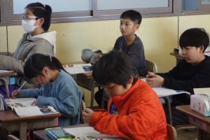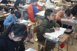 4年生の社会科は、地元の歴史や産業などの特色について学んでいます。この日は、地元で有名な七宝焼の歴史や技術について学習しました。また、七宝焼の技をもつ職人の年令が高くなり、技を受け継ぐ後継者が減ってしまっているという課題があることも知りました。
