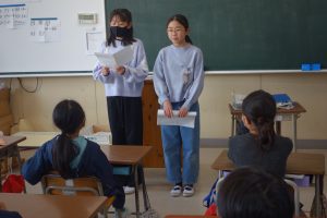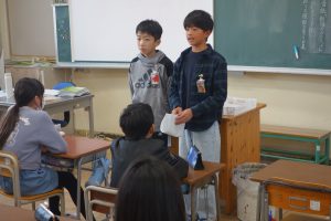 朝の選挙活動 未分類 2026.02.20 27日に児童会役員選挙があります。それにむけて、この日から25日までの朝に、選挙活動が行われます。立候補者は、3~5年生の教室を回って児童会活動に対する思いを伝えます。今回は5年生の立候補者を中心に、その様子をご紹介します。