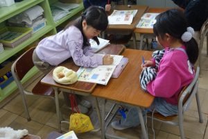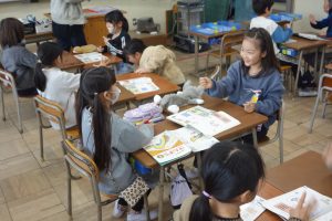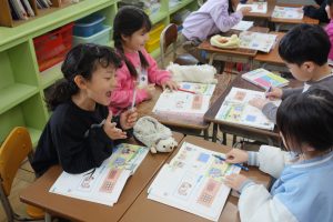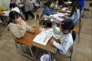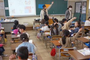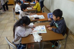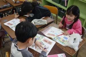 大きさくらべ 1年生 2026.02.24 1年生の算数は、広さの勉強で広さを比べる方法を学んでいます。この日は、場所取りゲームで盛り上がりました。2人でじゃんけんをして勝った方がマスを1つ塗ります。それを繰返して塗ったマスの広い方が勝ちです。笑顔で広さの学習ができました。