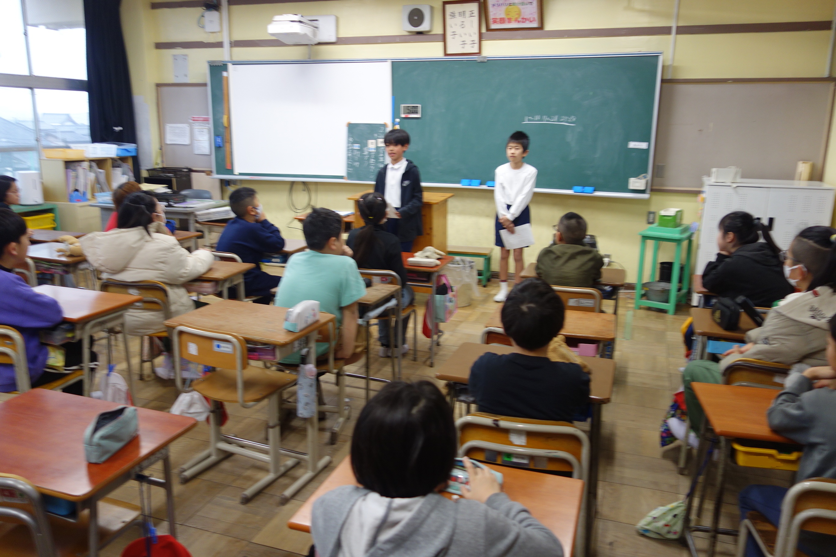 未分類この日の朝が、選挙活動の最終日でした。この日は3、4年生の教室を中心に回っていたようです。立候補した子たちは、誰もがしっかりと話をしていました。その立派な姿を見ていると、誰が当選するか以上に、普段何を考えてどんな行動をしているかが大切だということを伝えてもらった気がしました。