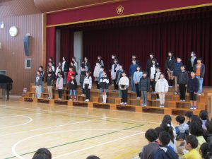 3年生 6年生を送る会 3年生 2026.02.27 6年生を送る会で、3年生は〇×クイズの出し物をしました。クイズは小学校生活の中から出され、難しい問題もあったようですが、楽しく行うことができました!最後の6年生の合唱はすばらしい歌声とピアノ演奏でした♪