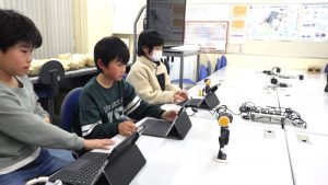 3年生 プログラミング学習 3年生 2026.02.27 ロボホンを使って、プログラミング学習をしました。 指示を出すと、それ通りの動きをします。 ロボホンが立ったり、話したりすると、みんな大喜び。 次回は、どんな指示を作ったかを発表し合いましょう。