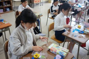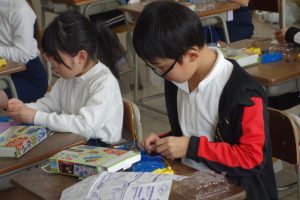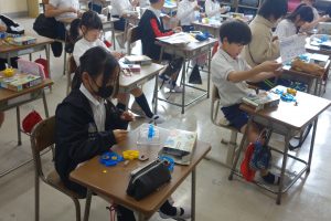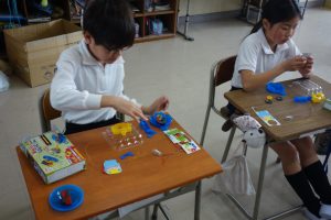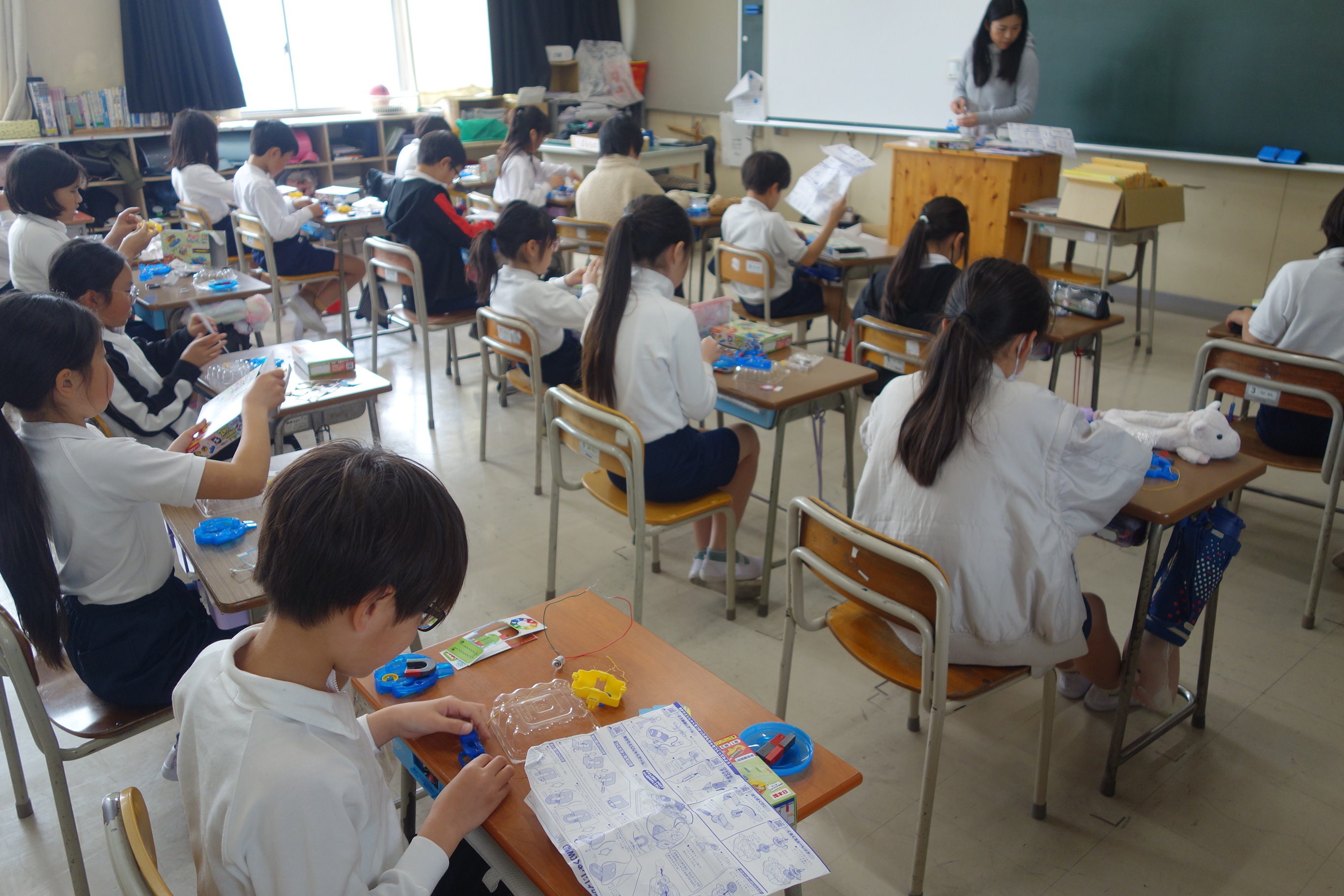 3年生の理科は、磁石の性質について学んできました。この日は、教材キットを使って、明かりと磁石を使ったおもちゃを作りました。説明書をしっかりと見て、組み立てに使うものや組み立てる順番を確認します。自分で作り方を確認する経験は、決して多くはないので、とても良い経験になりました。
