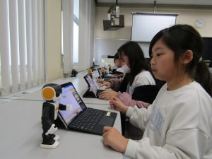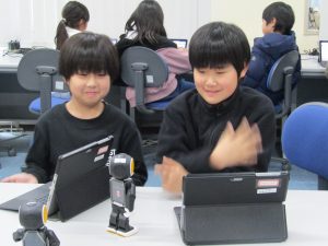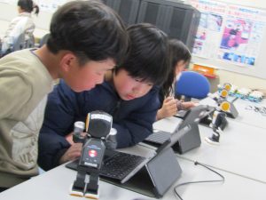 3年生 プログラミング学習2 3年生 2026.03.03 3年生のプログラミング学習でロボホンを使いました。「立つ」→「踊る」→「<ありがとう>と言う」→「座る」などのプログラミングを考えて、上手に動かすことができました!ロボホンの歌や踊りはとてもかわいらしかったですね♪