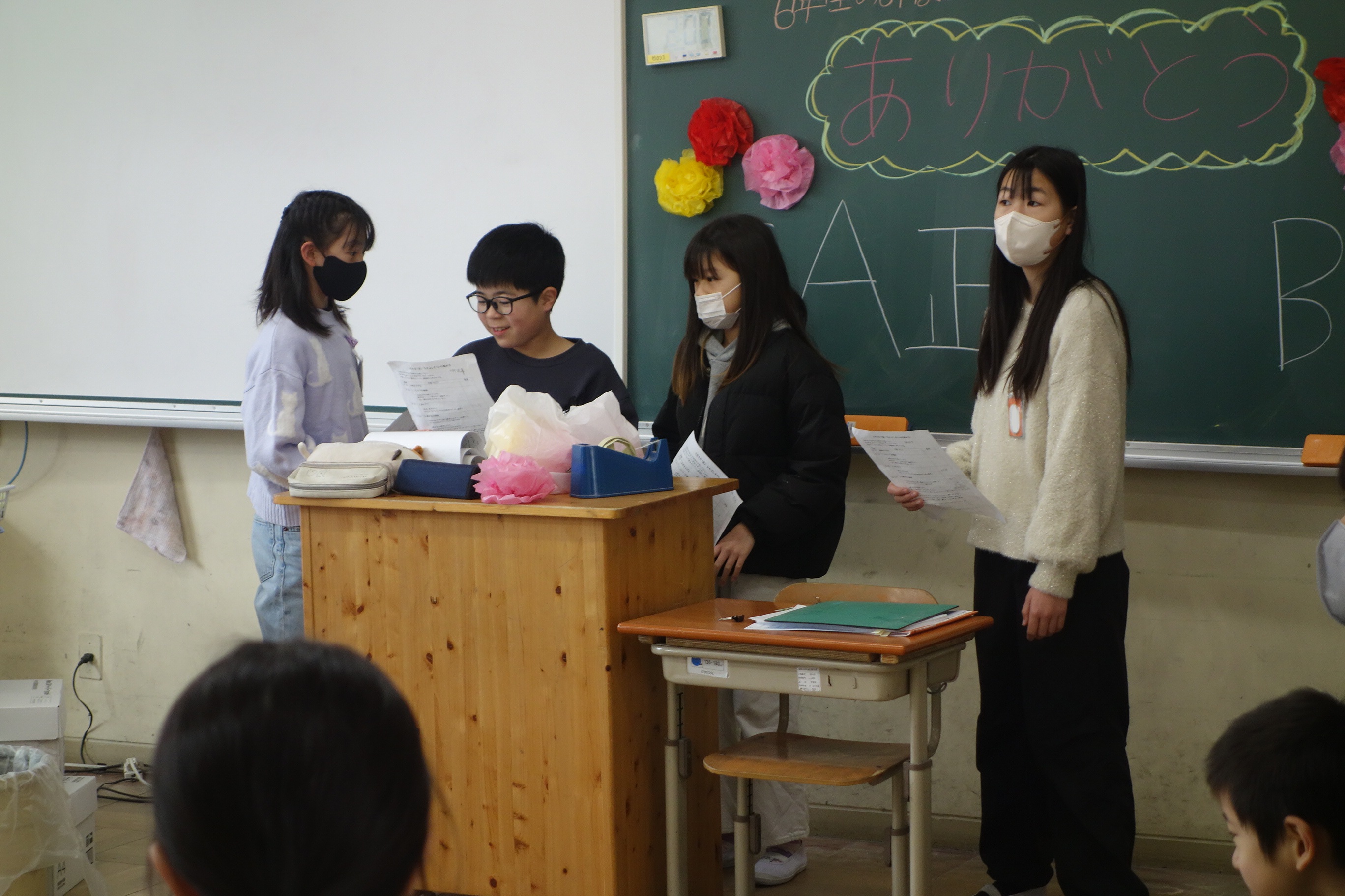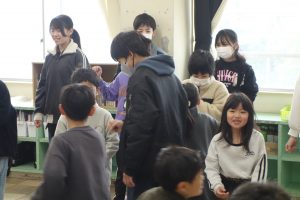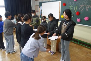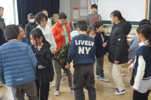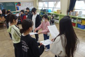 なかよし活動 6年生 2026.03.06 6年生が参加できる最後のなかよし活動がありました。5年生が運営役を務めました。なかよし班のみんなで、じゃんけんピラミッドを楽しみました。活動の最後には、1~5年生で作った手紙を感謝の言葉とともに手渡しました。