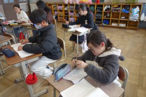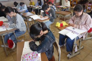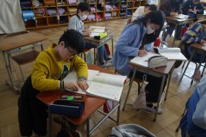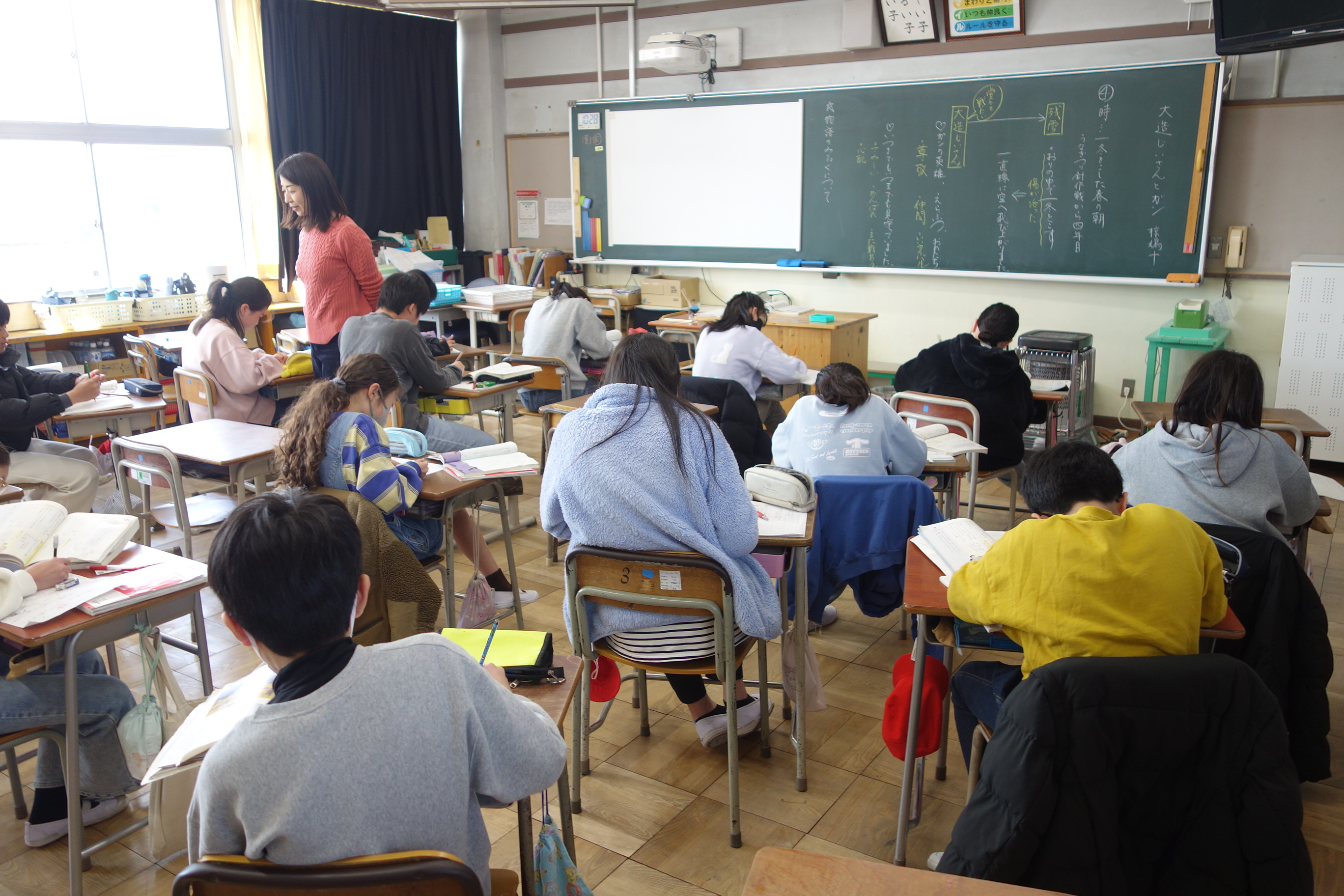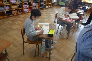 大造じいさんとガン 5年生 2026.03.17 5年生の国語では、物語文の読み取りをしています。この日は、今までの学習のまとめとして、物語の魅力について振り返り、ノートにまとめました。みなさん、大造じいさんと残雪の好敵手として相手を認めた関係を中心に書き進めていましたね。