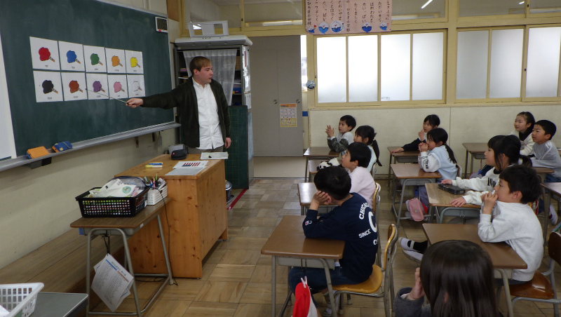 みんなでALTの先生の名前を覚えて呼んでみたり、色の英語を練習したりしました。
