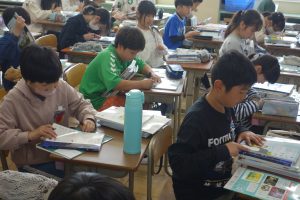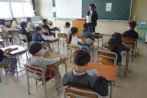 未分類この日から学級開き。それぞれの教室の中で、学級活動が行われていました。じっくりと先生の話を聞いたり、教科書などの配付物を配ったり、学級の輪を作るための簡単なレクをしたり…。忙しそうに配付物に記名しながらも、わくわく感が表情にあふれている子がたくさんいました。