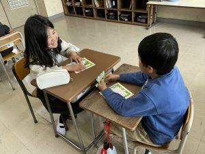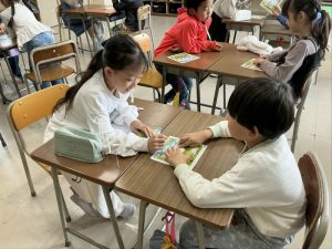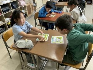 また、英語のジャンケンの言い方を練習し、みんなでジャンケン大会をしました。