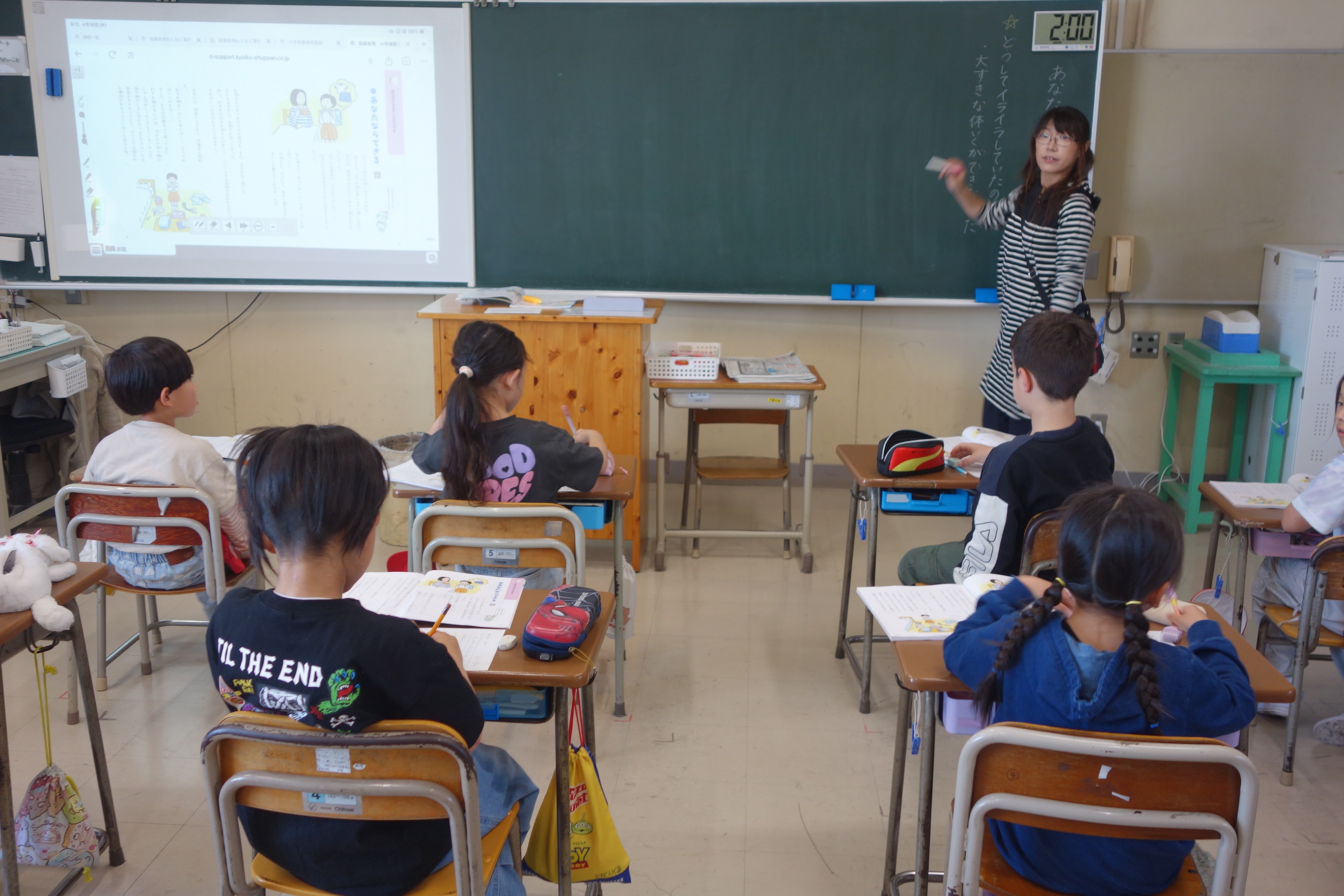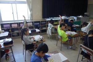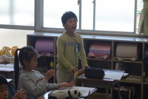 あなたならできる 3年生 2026.04.16 3年生の道徳は、節度と節制について考えました。だれもができることのようで、実践するのは意外と難しいことです。教材の主人公の行動に対する話し合いを通して、自分でできることは自分でしようという思いをもつことの大切さを確認し合いました。