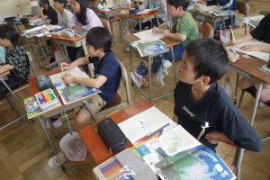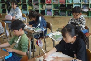 4年生の社会科は、自分たちが住んでいる愛知県や津島市のことを学んでいます。津島市は平野という平らな土地にあることや、それが濃尾平野という名前であることを学びました。「濃尾平野って、校歌にもでてくるね」と気づいた子もいました。その気づきで生活と学習が結びつきましたね。
