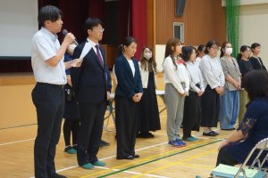 PTA総会 学校行事 2026.04.20 体育館でPTA総会が行われました。新旧役員の交代もあり、新会長の下、今年度のPTA執行部が動き出しました。こうしたPTA役員の方々や地域の方々の温かいつながりが、子どもたちに伝わり、温かい蛭間校区が末永く続くとよいですね。
