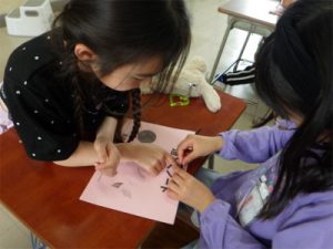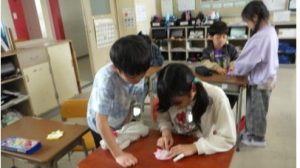 先日の算数の授業では猛獣狩りを行い、わり算の等分除と包含除のちがいを勉強しました。みんなノリノリで歌っており、授業外でも「わり算なんてこわくない~」と口ずさむ姿が見られました。