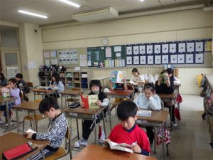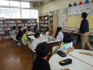 24日(金)に高学年図書室を初めて訪れました。図書の先生から本の分類について教わったり、図書室を探検したりしました。聞く姿勢もとてもすてきです。