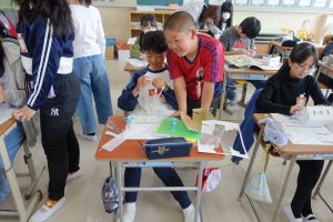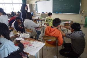 6年生6年生の図画工作は、『くるくるクランク』の制作に取りかかりました。クランクを使った動く作品の制作です。まずは動きの中心となるクランクを作りました。これがなかなか難しく、苦労をしている子もいました。どんな動きをする作品に仕上がるのか、今から楽しみですね。
