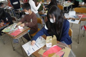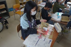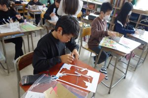 6年生の図画工作は、『くるくるクランク』の制作に取りかかりました。クランクを使った動く作品の制作です。まずは動きの中心となるクランクを作りました。これがなかなか難しく、苦労をしている子もいました。どんな動きをする作品に仕上がるのか、今から楽しみですね。