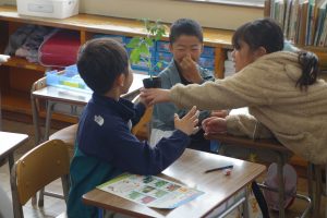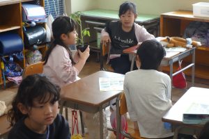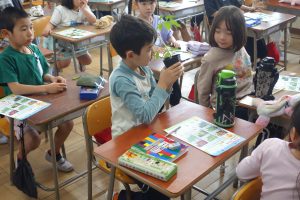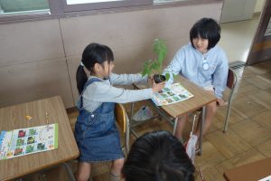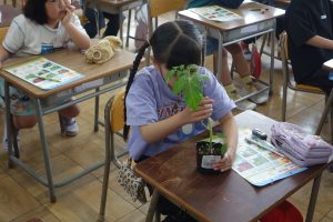 そだてる 野さいを きめよう 2年生 2026.04.22 2年生の生活科では野菜を育てます。まず、知っている野菜や身のまわりにある野菜について話し合いました。その後で、実際に野菜の苗を手に取って、葉や茎の様子、においなどを確かめました。みなさんはどんな野菜を植えることになるのでしょうね。