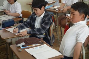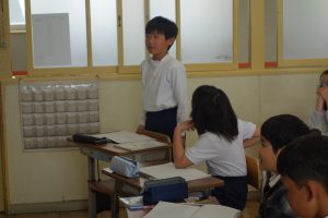 4年生の算数は、大きな数の学習をしています。この日は1憶をこえる数の大きさを比べたり、0~9の数字をすべて使って1憶をこえる数をつくったりしました。1憶の位で始まる数字で、0~9の数字をすべて使った一番大きい数と一番小さい数は何になるかも、みんなで考えましたね。