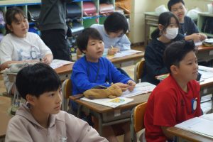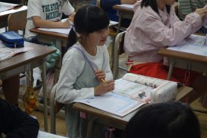 5年生の家庭科では、自分の生活を振り返り、自分にもできそうな家庭の仕事について考えました。洗濯ひとつをとっても、それぞれの家庭で洗濯をする担当や畳む担当が違うことがお互いの発言でよく分かりました。また、普段着ている服も、用意されたものを着てくる子や自分で選んで着てくる子がいることも分かりました。興味深い情報交換ができましたね。